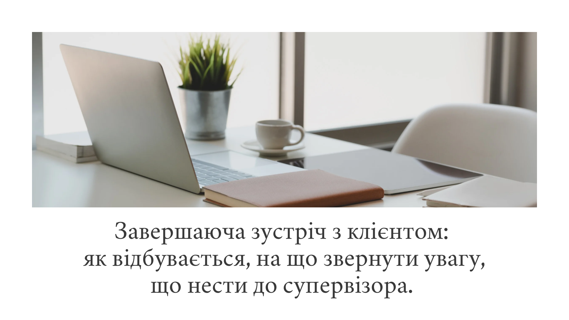 Лекція Завершаюча зустріч з клієнтом: як відбувається, на що звернути увагу, що нести до супервізора.